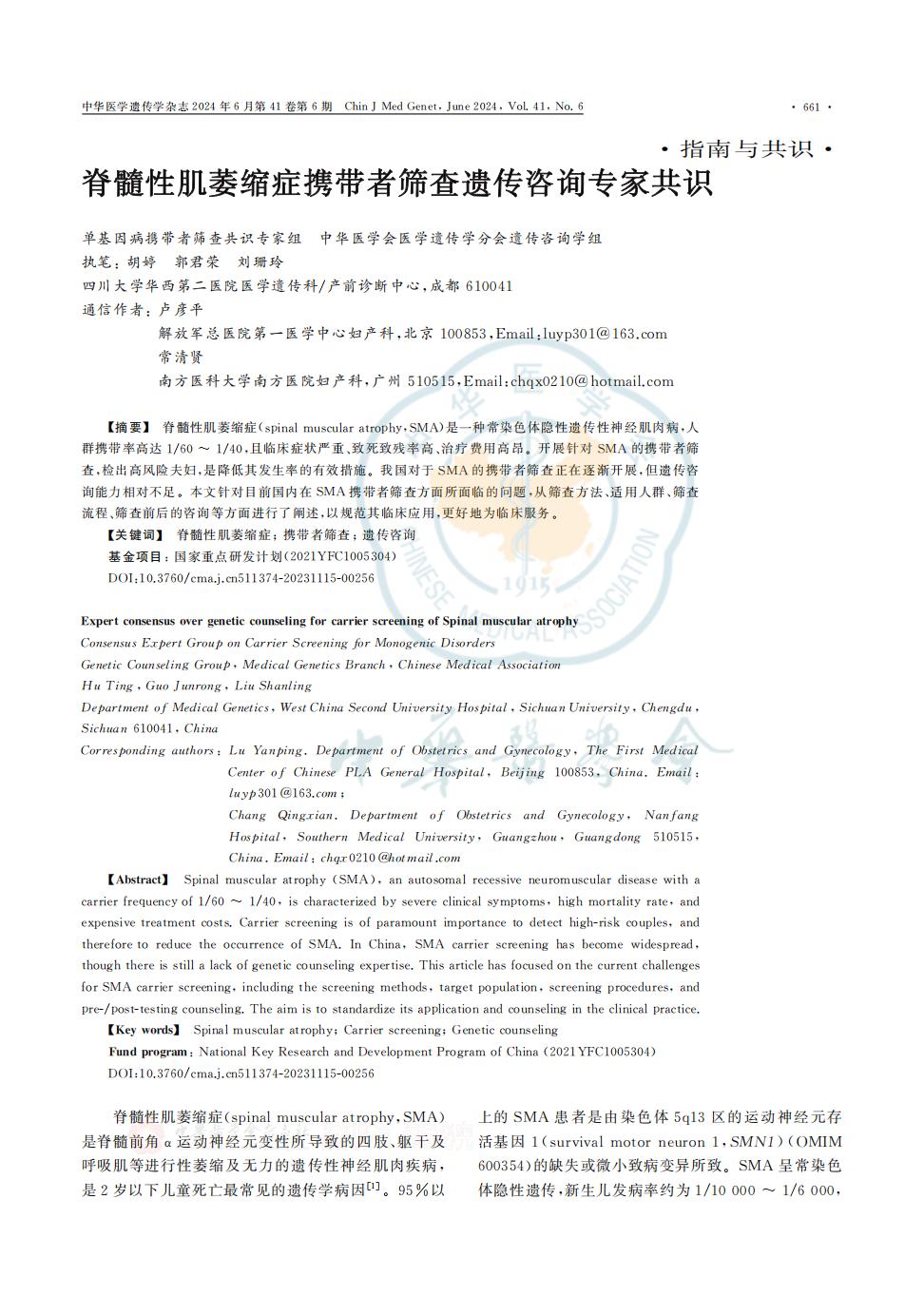 脊髓性肌萎缩症携带者筛查遗传咨询专家共识.pdf