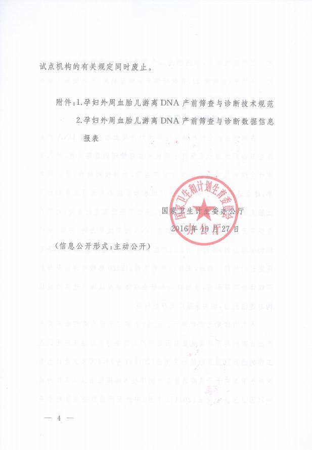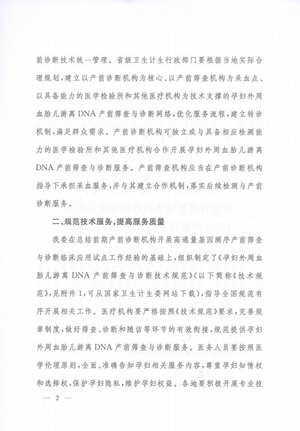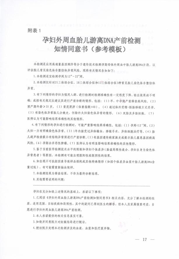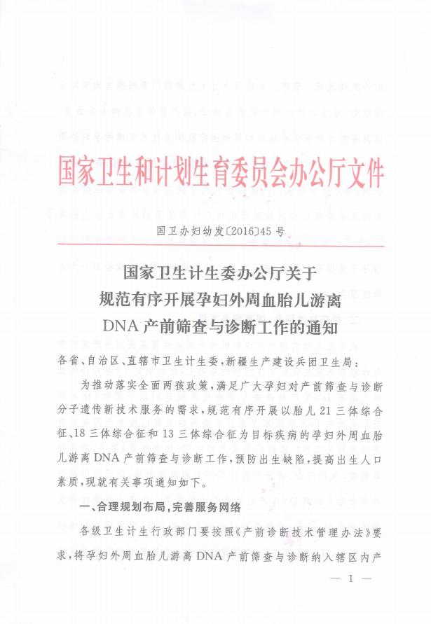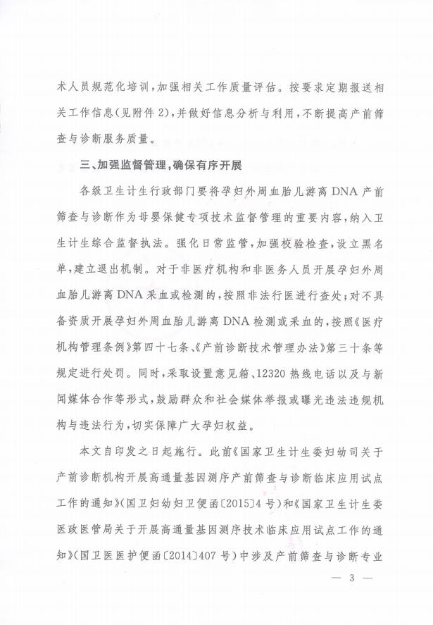 国家卫生计生委办公厅关于规范有序开展孕妇外周血胎儿游离DNA产前筛查与诊断工作的通知.pdf