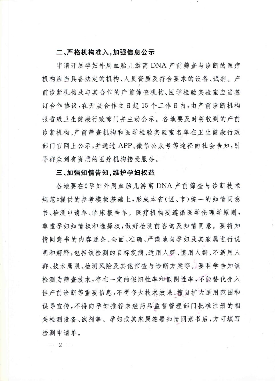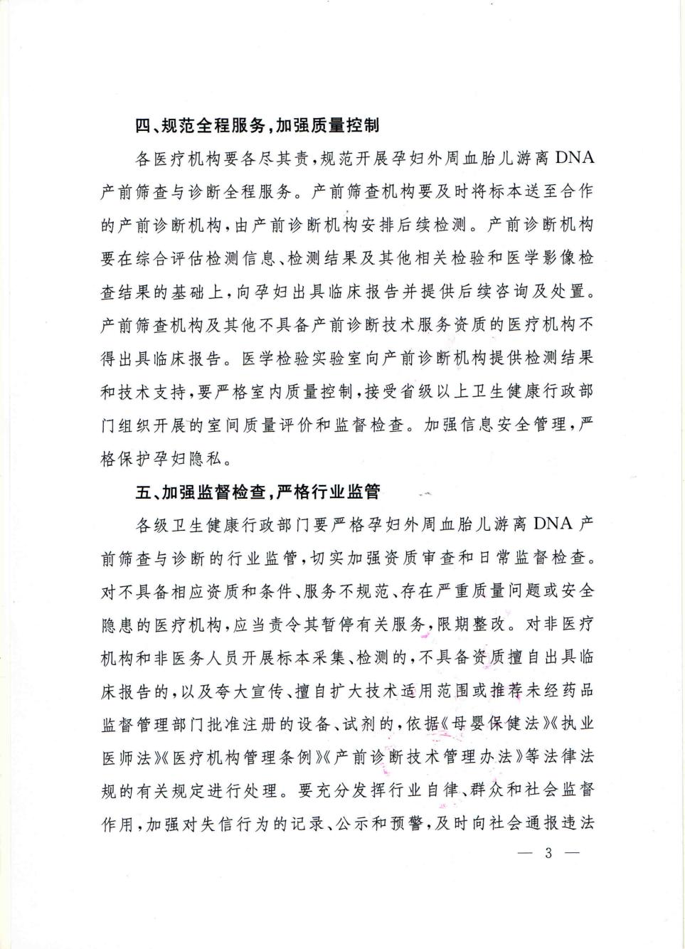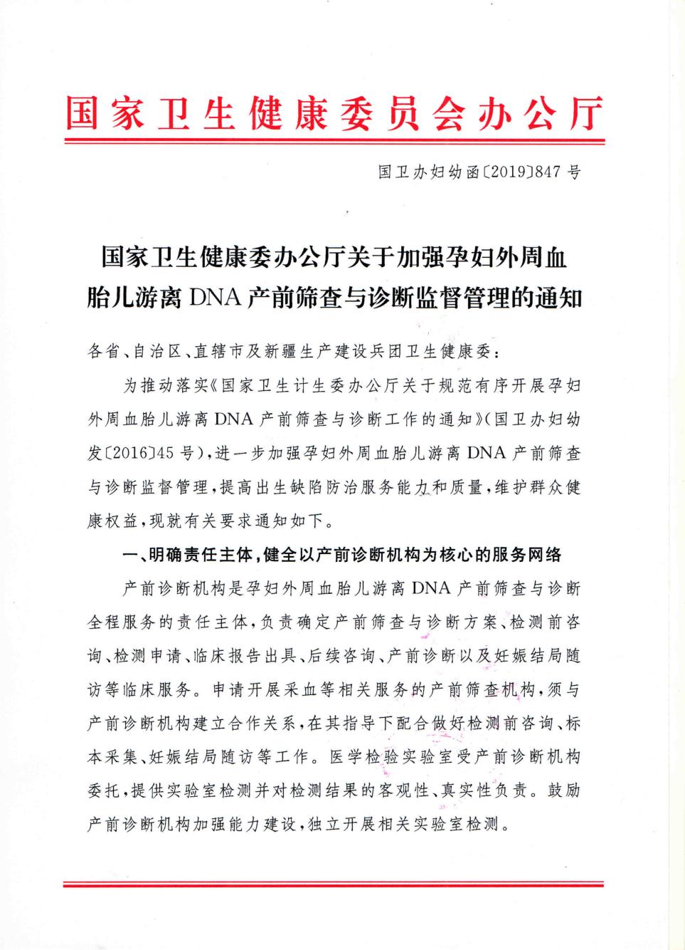 国家卫生健康委办公厅关于加强孕妇外周血胎儿游离DNA产前筛查与诊断监督管理的通知.pdf