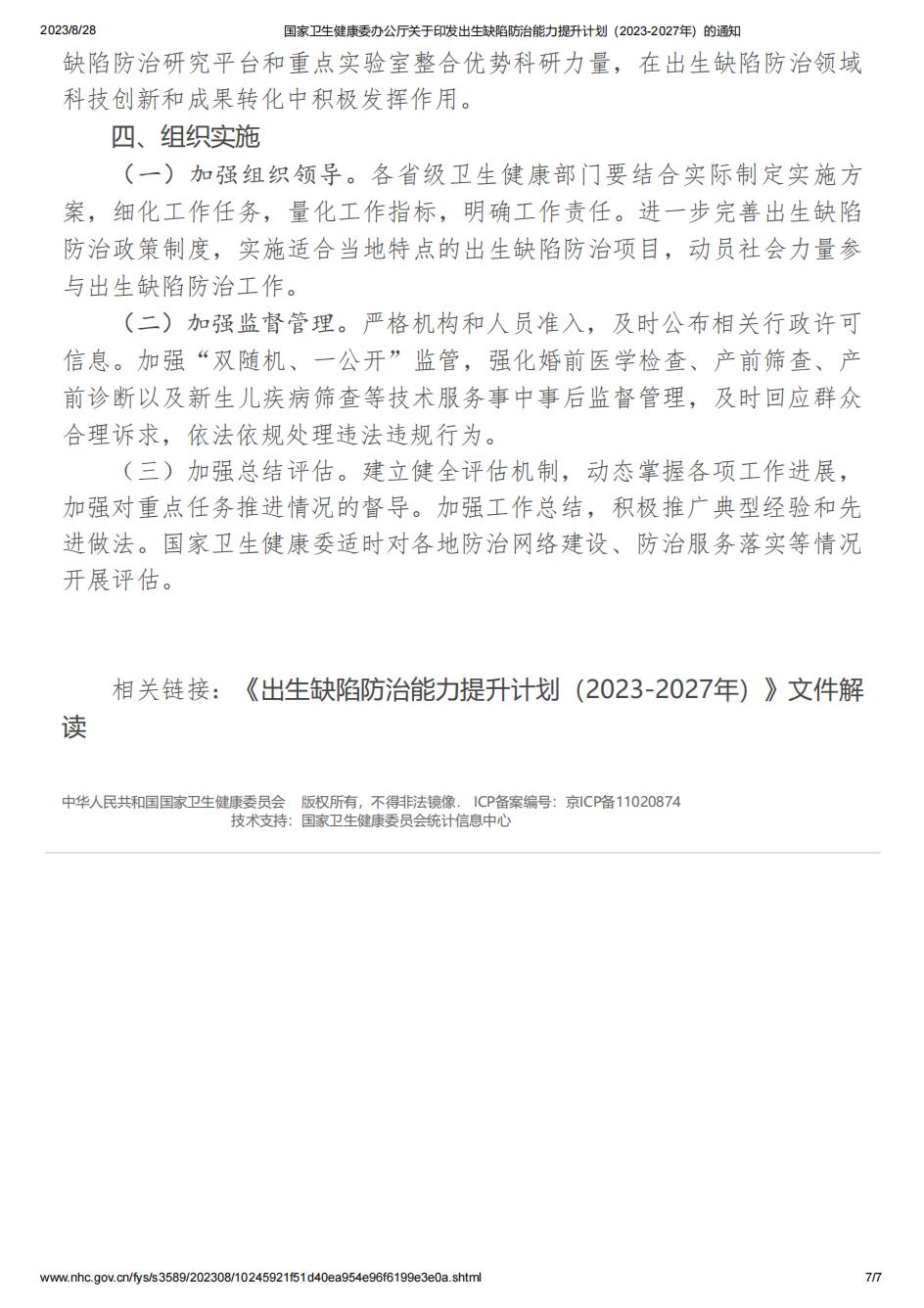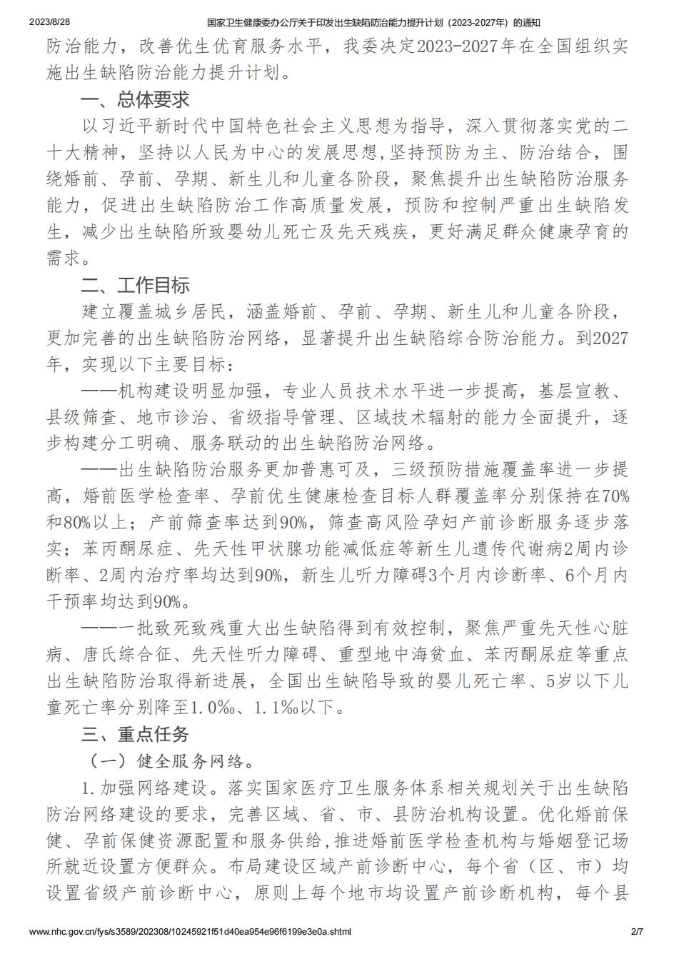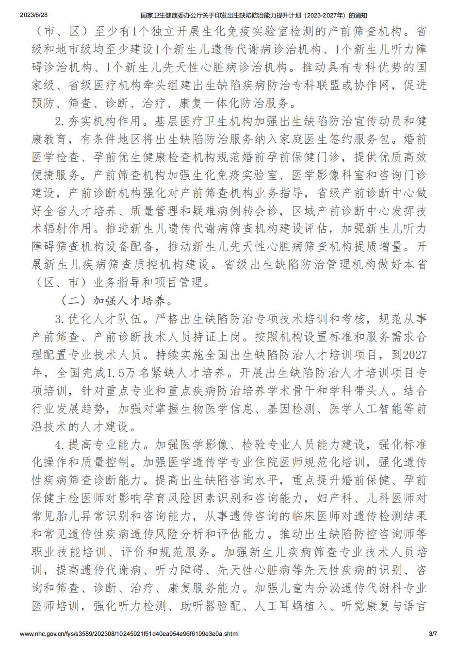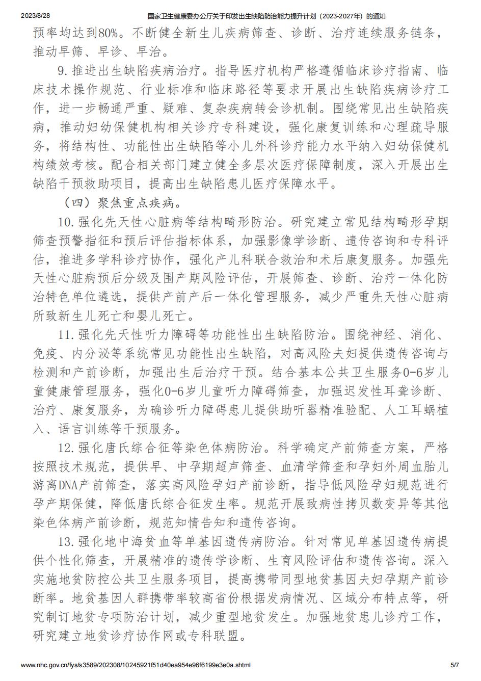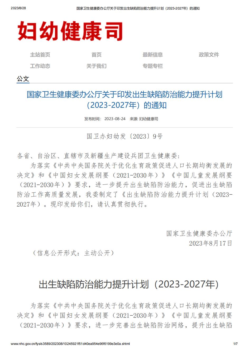 国家卫生健康委办公厅关于印发出生缺陷防治能力提升计划(2023-2027年)的通知.pdf