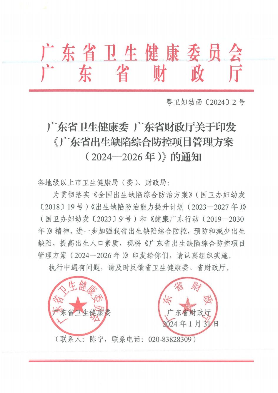 《广东省出生缺陷综合防控项目管理方案(2024—2026年)》.pdf